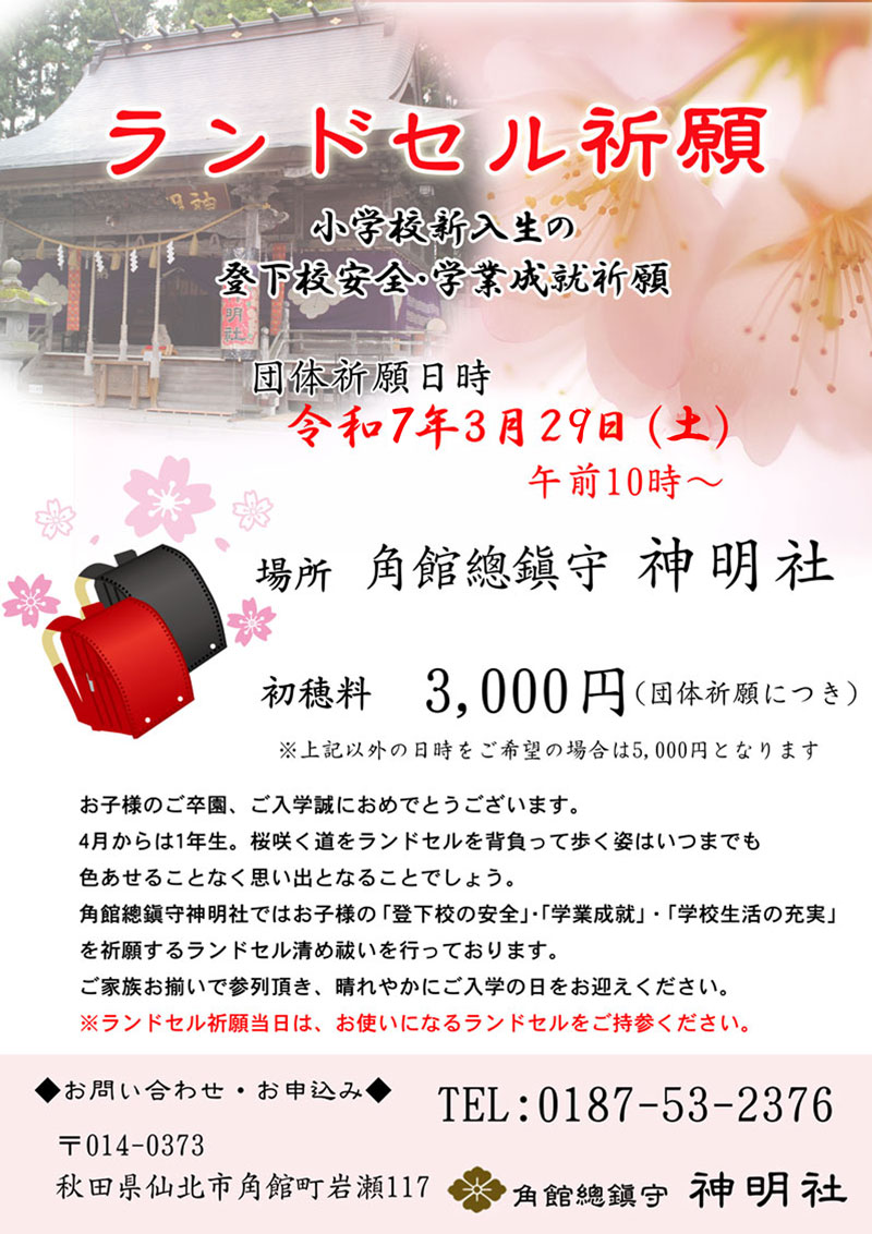 ランドセル祈願祭が斎行されました