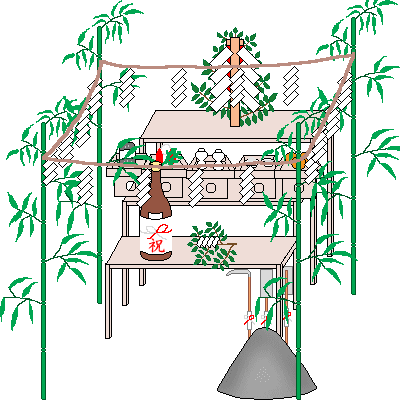 新宅祭(しんたくさい)・竣工祭(しゅんこうさい)地鎮祭に始まり、上棟祭など一連の建築に関するお祭りの最後に「竣工祭・新宅祭」があります。新しい神棚を設け、国全体の守り神、天照大神様と地域の守り神の大神様をお祀りし、神様のお陰で無事事故もなく新居が出来上がった事をご奉告し感謝すると共に、これからのご加護をお祈りします。 |
