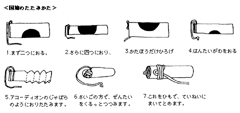 ・ 国旗は常にきちんとたたみ、降納箱等を用意してしまっておきます。