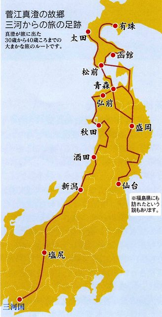 天明3年(1783)のとき、30歳で故郷を出奔した。その理由は不明であるが、故郷を離れてからも、郷里の知人に音信を知らせたりしていることから、事件に関わってのこととは思えない。北を目指して旅に出た真澄は、信州から越後を通り、翌年の暮れに秋田の地に足を踏み入れた。以来信州、東北から蝦夷地にいたる長い旅を重ねる。